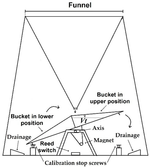 The Vantage Pro 2 reports rain using a tipping bucket system. Like most weather reporting systems, a tipping bucket system records rain by collecting rain in a “bucket”, dumping its contents every time 0.01 inches of rain is received. As the first bucket is emptied, a second bucket replaces its, tipping when the bucket fills. An electronic switch is activated each time the bucket tips, allowing the weather system to measure both accumulated rainfall and rainfall rate.