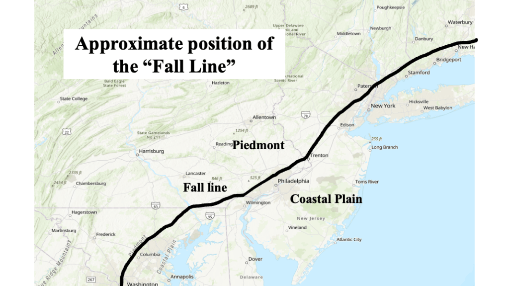 The line is often referred to as the “Fall Line”, the demarcation line between warmer temperatures to the southeast and a slower change to snow northwest. This line is well known to forecasters in the area, and it often used as a first guess as to the placement of the heavier snowfall when a change to rain might occur. As the event gets closer, more detail can be added to the forecast, but “Fall Line” generally serves as a good place to start when discussing the placement of heavy snow.