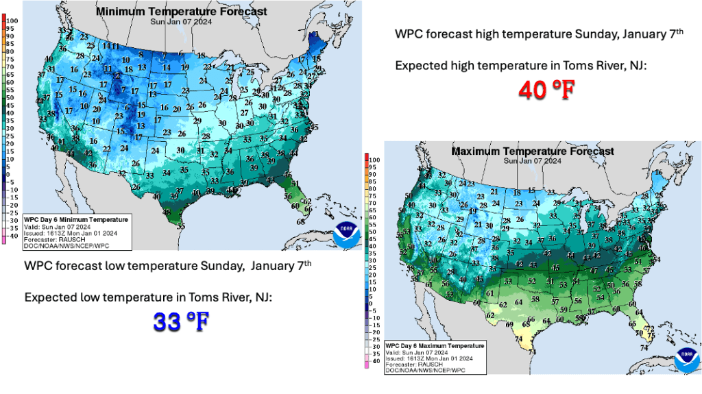 There is good model agreement (at this distance) to indicate a strong storm with heavy precipitation centered on Sunday, January 7th will affect the region. Closer to the coast, the precipitation is expected to fall primarily in the form of rain, with between 1 and 2 inches of rain possible. However, further inland, especially across portions of northern and western NJ into eastern PA, there is the potential for a decent amount of snowfall.