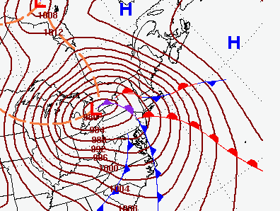 Finally, south to southwest winds will increase in strength and become gusty late Friday into Friday night. Figure 4 below shows the anticipated position of the next strong surface low over western NY state Friday into Friday night. Note the concentric brown lines surrounding the surface low. Those lines are called isobars, and they represent line of constant surface pressure. In general, when isobars are more tightly packed together, associated winds are stronger.