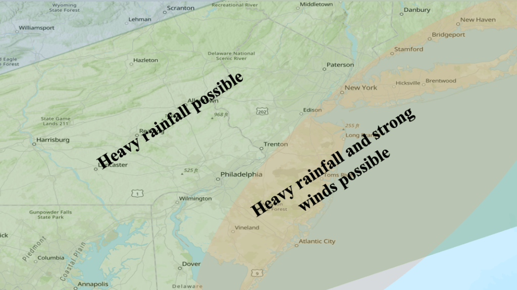 Figure 5 shows the possible weather impacts of the upcoming storm. Along the Jersey Shore, the main weather impacts should be heavy rainfall and strong winds, both affecting the region Friday into Friday night. As mentioned earlier, temperatures ahead of the low pressure system are expected to be much too warm for snow across the entire area.
