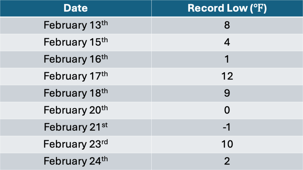 Though the core of the Arctic air began to ease after February 24th, cold air remained in place across the Jersey Shore. In fact, only one day during the month (February 8th) had an average temperature above normal. Every other day of the month had an average temperature below normal, with temperatures reached 25 to 30 degrees below normal within the heart of the Arctic air between February 16th and February 24th. The pervasiveness of the cold, particularly after St Valentine’s Day, rivaled the coldest period in the history of the Bellcrest section of Toms River, which occurred during December 1989.