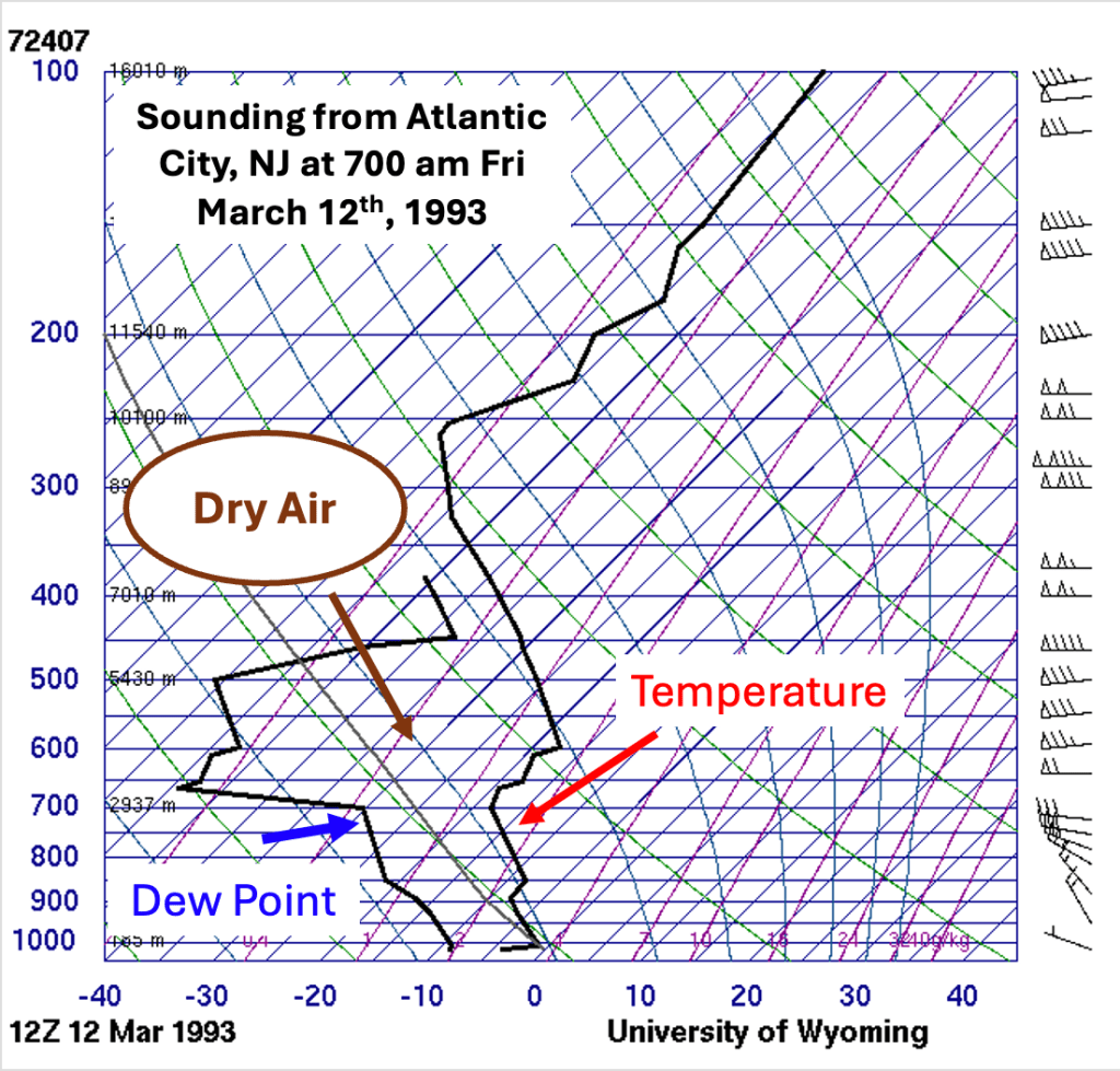 Before the storm along the Jersey Shore, weather conditions were seasonable for the middle of March, with highs in the 40s and lows in the 20s. The airmass in place was quite dry, which is often a portend to precipitation remaining in the form of snow longer than would otherwise be expected. The reason for that is beyond the scope of this blog entry, but a more in-depth explanation as to why dry conditions ahead of storm might mean more snow can be found here.