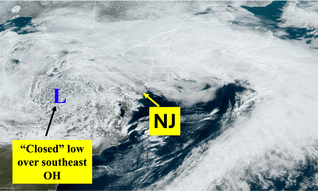 As mentioned earlier, because there is not a system to the west (or upstream) of the closed mid level low to cause it to move more quickly, the system will affect the Jersey Shore Friday with scattered showers. During the weekend, skies should become mainly sunny over NJ as the closed low finally exits and a ridge of high pressure develops over the Ohio Valley. Once in place, the ridge of high pressure should persist into at least the middle portion of next week before the next chance of meaningful rainfall for the Jersey Shore.