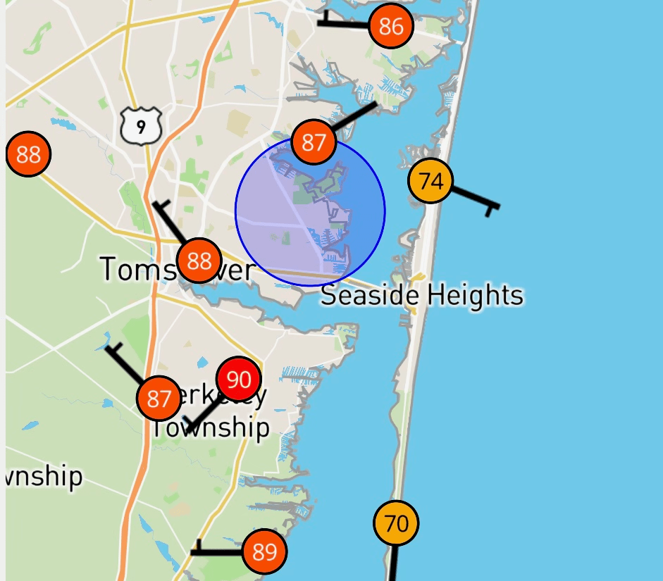 As a backdoor cold front approached the Jersey Shore from the New York City metro area, winds along the Jersey Shore shifted from south to southwest. The wind shift pushed the ocean cooled air just offshore and allowing the hot temperatures further inland to make their way back to shore. In the Bellcrest section of Toms River, NJ, the temperature peaked at 90 degrees at about 300 pm, which was much warmer than anticipated for the date. Subtle changes in wind direction in the spring and early summer can usher dramatic temperature changes to the Jersey Shore, and this was a prime example.