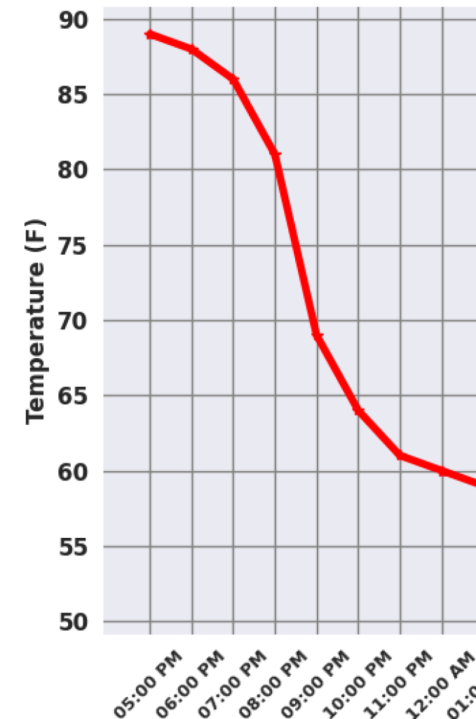 A closer look at the Jersey Shore showed temperatures near 90 degrees to the west of Barnegat Bay, as the southwest wind kept the warmer temperatures in place. Along the barrier islands, a wind shift to the east and northeast allowed the ocean cooled air to drop temperatures back through the 70s. Temperatures did not change much through about 700 pm, as the wind directions remained constant. However, just before sunset, the backdoor cold front swept westward across the Jersey Shore, forcing temperatures through the 60s during the evening.