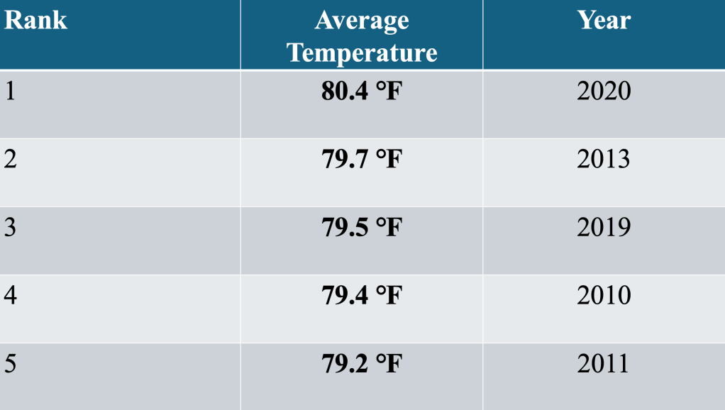 How Often Does the Temperature Reach 100 degrees on the Jersey Shore?