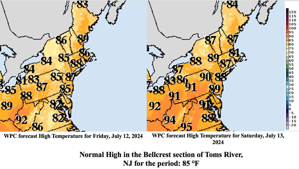 High temperatures along the shore have remained in the mid to upper 80s, as a developing sea breeze keeps the temperatures cooler than nearby areas just inland. However, the high dew points have resulted in quite uncomfortable conditions along the Jersey Shore this week, and that is expected to continue through the end of the week.